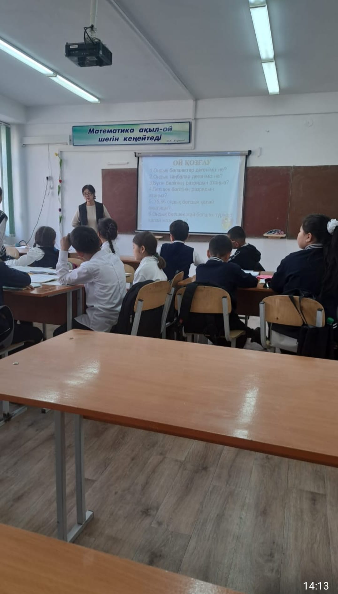 24.01.24 жылы 5"А" сыныбында математикадан пәнінен өтті. Пән мұғалімі Идирисбаева Гүлнар. Сабақтың тақырыбы: "Ондық бөлшектерді жай бөлшекке айналдыру