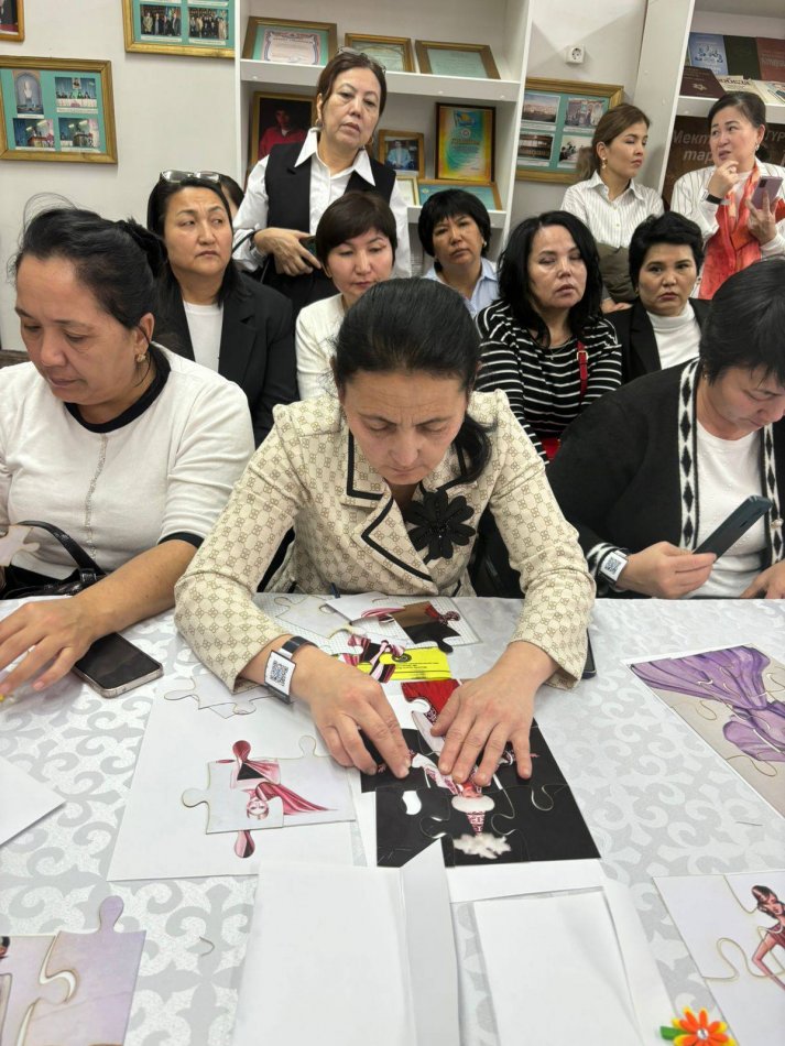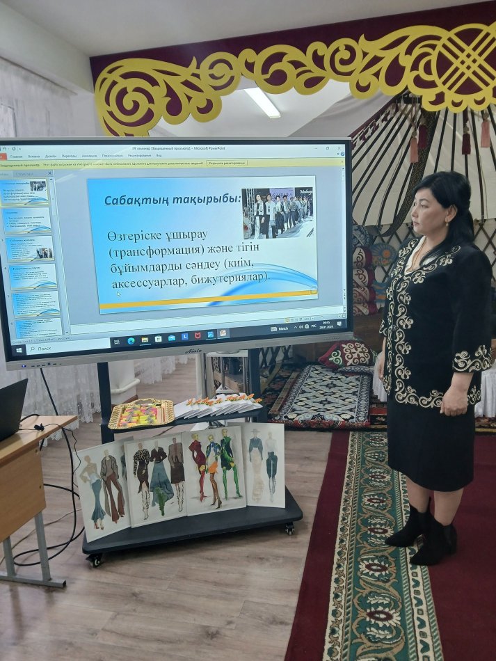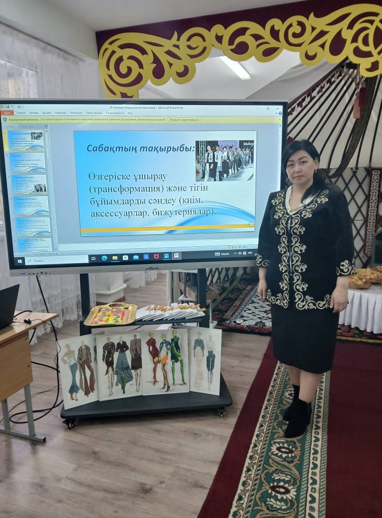 Ж Аймауытов атындағы №64 мектеп-гимназиясының көркем еңбек пәні мұғалімі зерттеуші-педагог Сапарбекова Алия 7 «А» сыныбымен «Өзгеріске ұшырау (трансформация) және тігін бұйымдарды сәндеу (киім, аксессуарлар, бижутериялар» атты тақырыпта сабақ өттілді.Сабақ барысында жасанды интелект сайттарымен жұмыс жасалынды. Сергіту сәтіне келген ұстаздар белсене қатысты.
