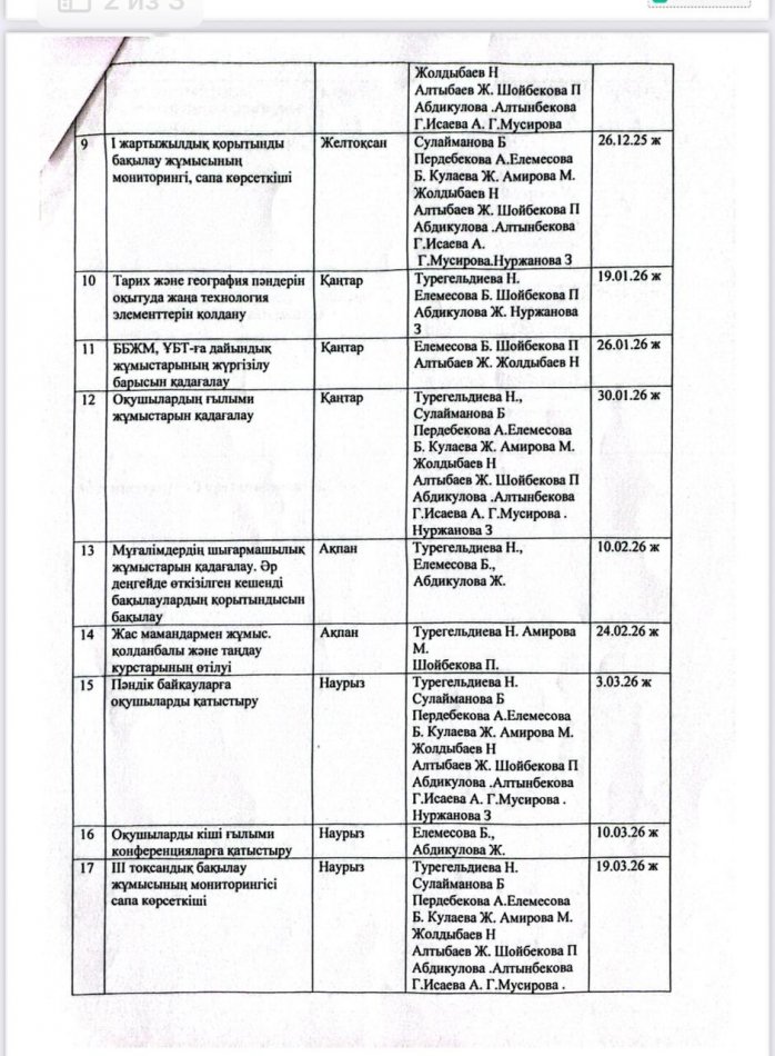 Жылдық, айлық, апталық жұмыс жоспарлары