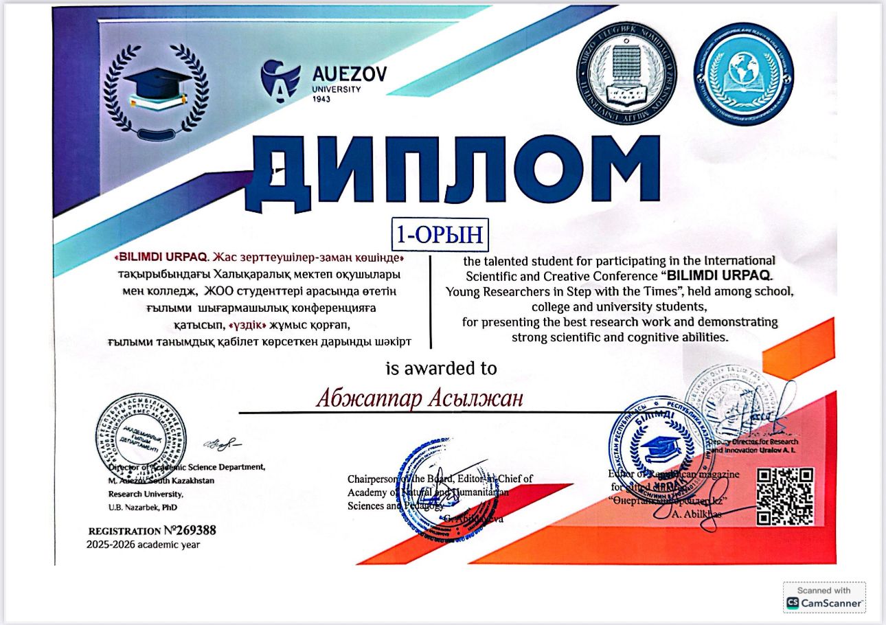 Досмаханбетова Ұлжан Әбдіқадырқызы