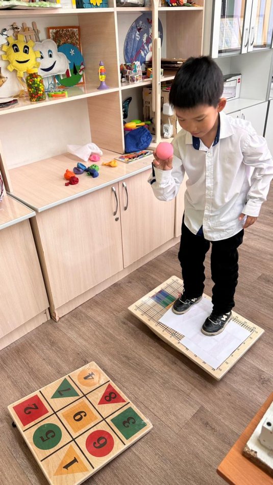 Бильгоу тақтаның үстінде тұрғанда тепе-теңдікті сақтап, бір уақытта қарапайым физикалық және сөйлеу тапсырмаларын орындау керек. Бұл ересектер мен бес жастан асқан балалардағы мишықты ынталандырады. Тепе-теңдікте тұрып сандарды дәлдеп доппен ұруға үйрету.